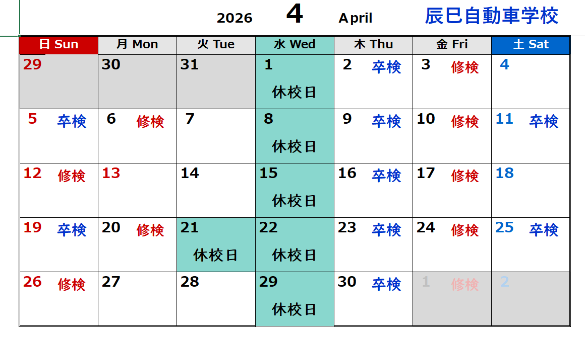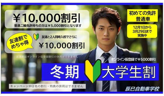 休校日情報や、オトクなキャンペーンなど、辰巳自動車学校からの最新情報をお届けします。